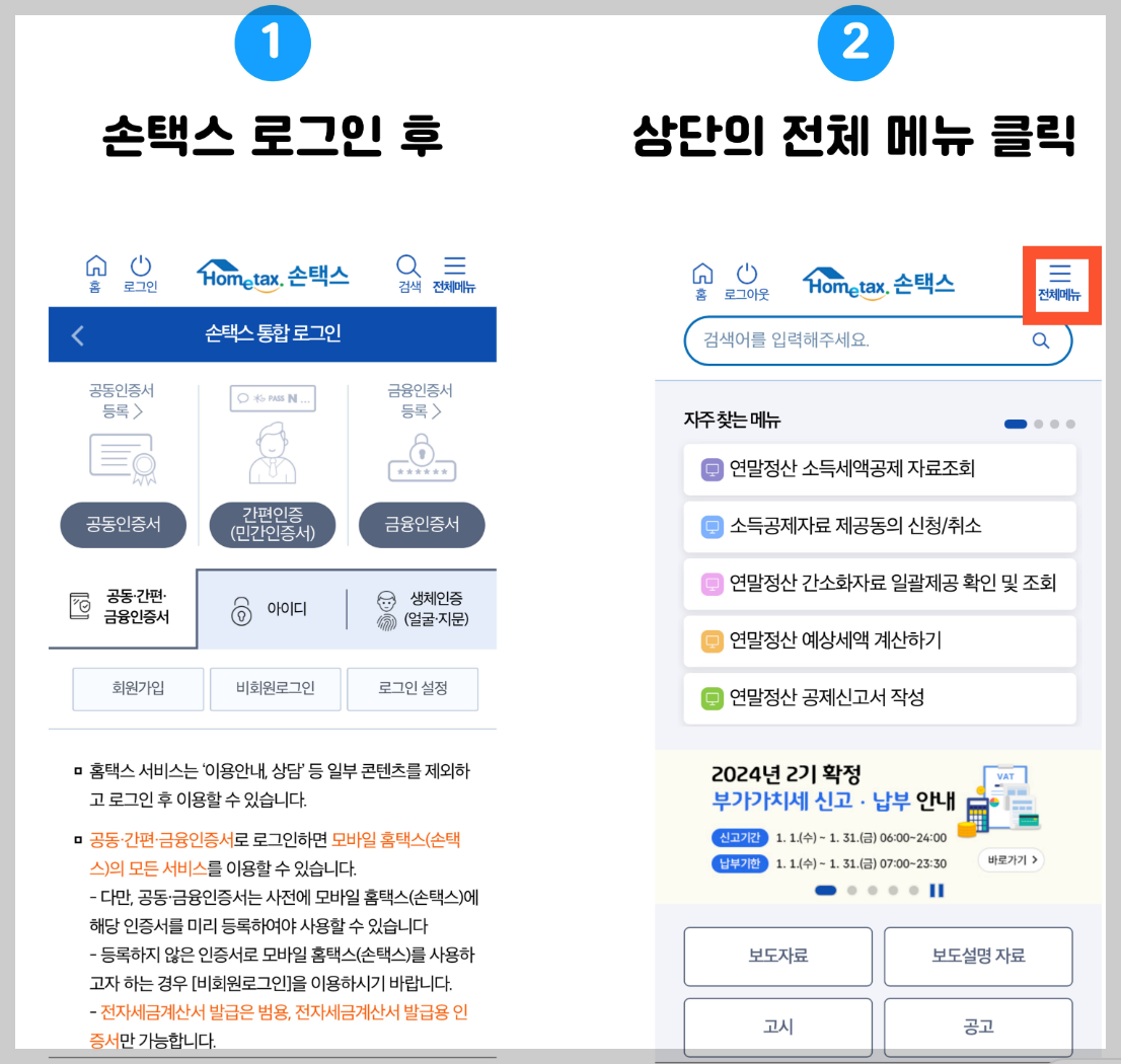 - 손택스(홈택스 모바일 앱) – 국세청 공식 서비스