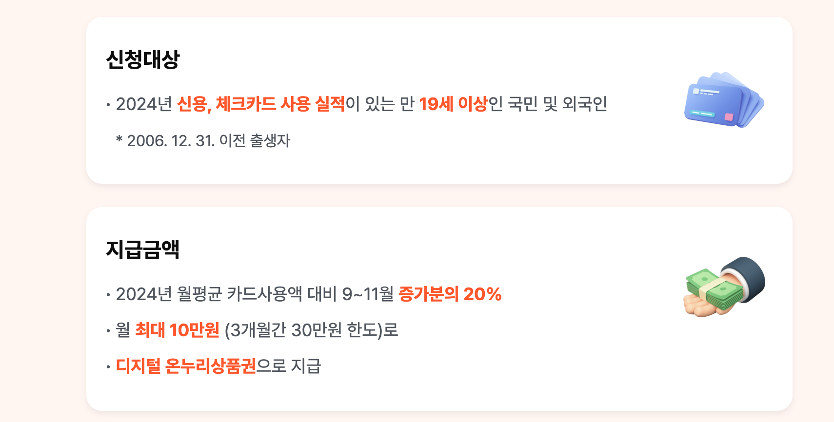 ✅ 2024년 카드 사용 실적이 있는 만 19세 이상 국민