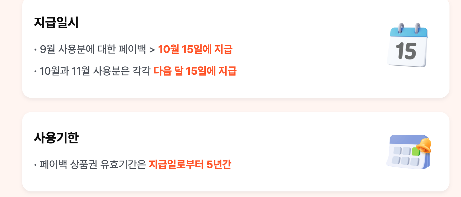 - 백화점, 대형마트, 배달앱 등 일부 사용 불가 업종 있음