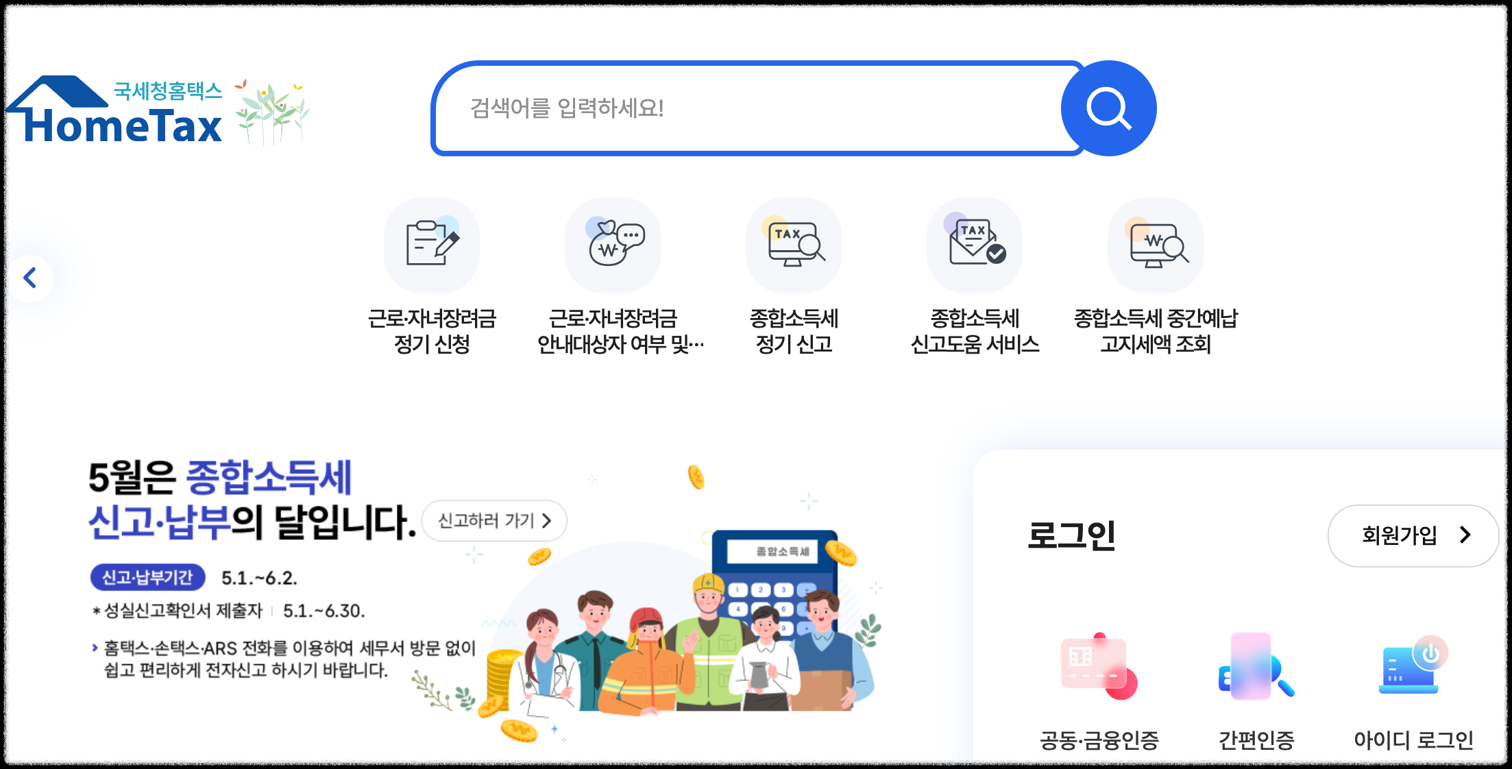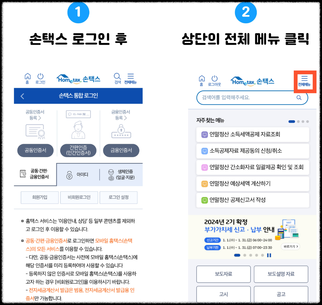 - 홈택스 접속 및 로그인