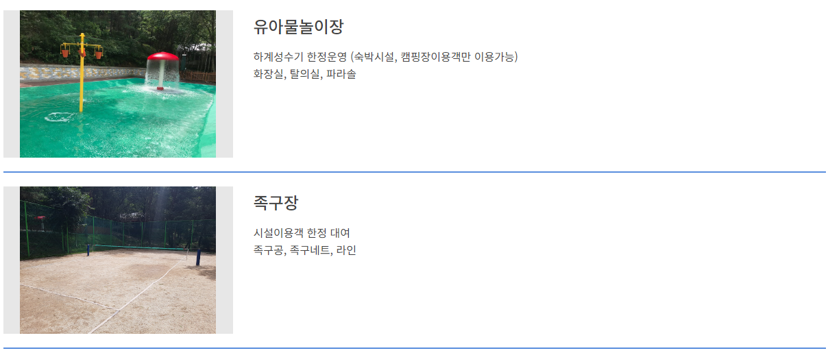 - 숙박 시설 외에도 바비큐장, 운동장, 산책로, 어린이 놀이터 등 다양한 편의 시설이 갖추어져 있어, 가족 단위의 방문객들이 편리하게 이용할 수 있습니다.