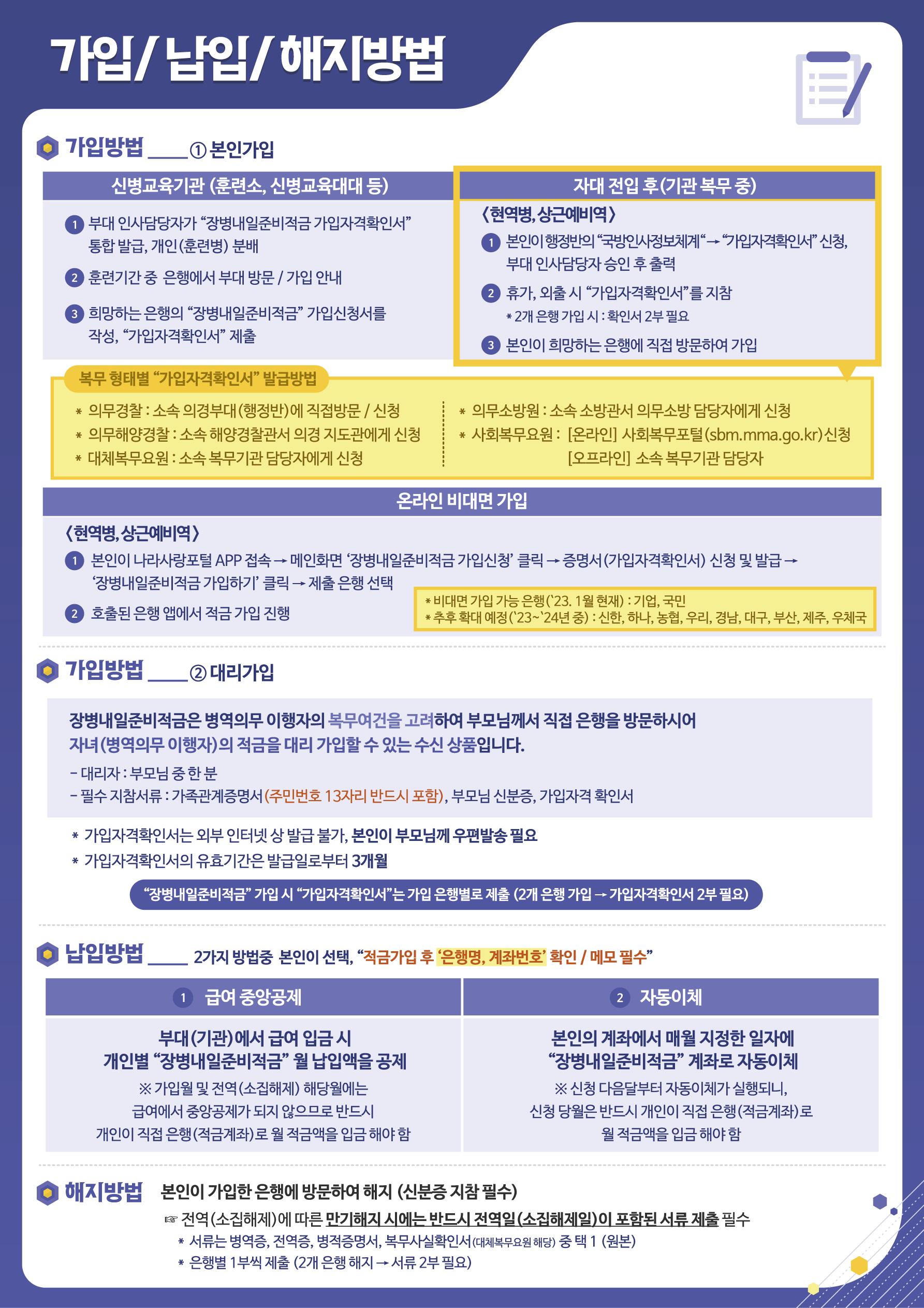 - 장병들은 군 복무 중 은행에서 직접 장병내일준비적금에 가입할 수 있습니다.