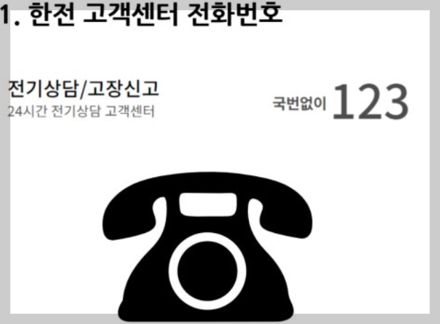 | 한국전력 | 세대별 전기요금 납부자 | ☎123 고객센터에 전화 신청 |